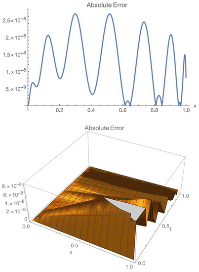 Example 4. We shall now consider fourth example of the NPDE bysubstituting parametersinto the general NPD Equation (1). So, the NPDE that we want to solve looks, The exact solution of Equation (22) is well known,