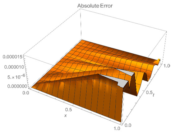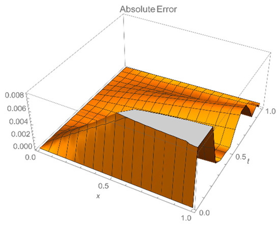 Figure 3. It is observed that there is no appreciable difference between the graphs of both solutions as the error is very small and hence indicating the technique works for calculating the solution of the NPDE.