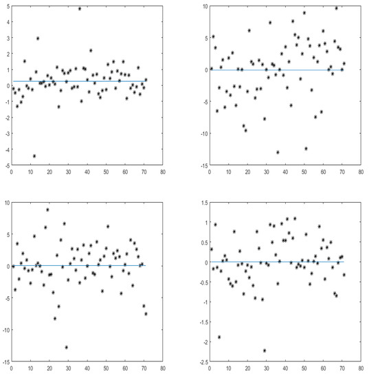Among wavelets and the models discussed above, in the literature there are several attempts to model, directly or indirectly, the nonstationarities of financial data such as exponential models. In [44], for example, the author investigated the problems time heterogeneity in the data for linear models. More precisely, different types of polynomials have been discussed for modeling issues. Recall that, obviously, the simplest way to extend linear models, which may be seen as Taylor’s first approximators of functions, in a time series when considered as a smooth function may be estimated by its Taylor polynomial to some degree. Three main issues have been raised by the author concerning the polynomial models: the near-multicollinearity problem, the time heterogeneity, and the misleading statistical results, see also in [45].