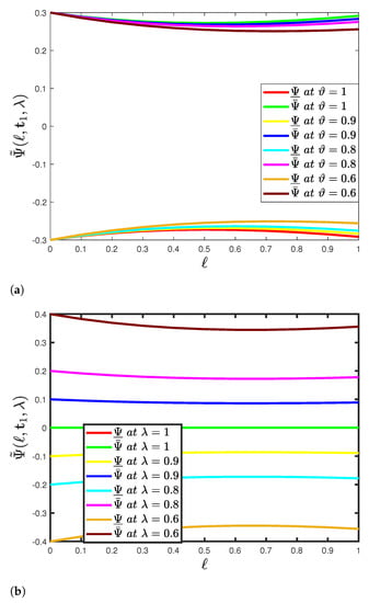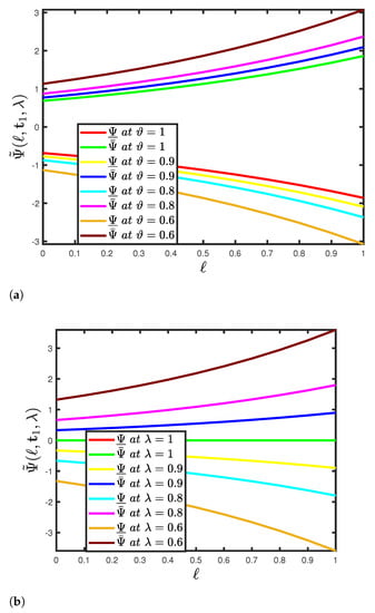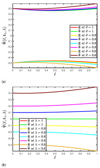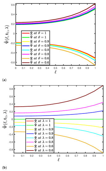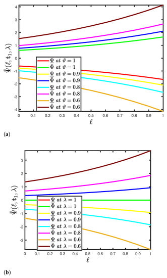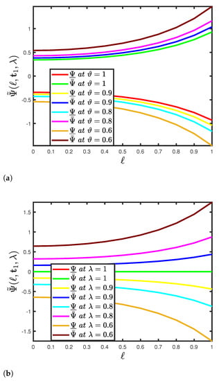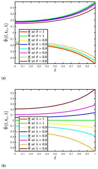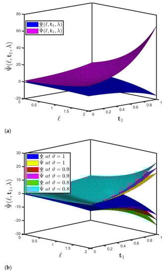 Figure 14a highlights the impact of the suggested technique on the mapping for the fuzzy CFD to have an uncertainty parameter . With the slight increase in , it then clearly demonstrates a large decrease in the mapping . Figure 14b highlights the effect of the recommended approach on the mapping for the fuzzy CFD to have a fixed fractional order with the varying uncertainty parameter With a small increase in the uncertainty parameter, the mappings and are stable.