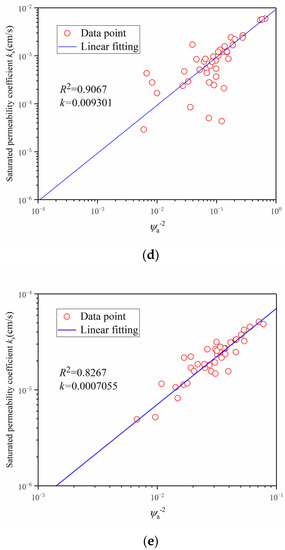 - The relationship model between the saturated permeability coefficient and air-entry value was determined to be ks = k0ψa−2, where k0 is the comprehensive proportional constant.