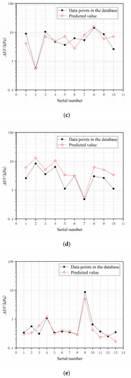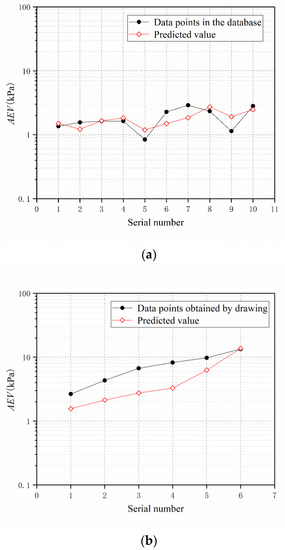 | The Serial Number of the Figure | The Serial Number of the Database | Saturated Permeability Coefficient ks (cm/s) | AEV in the Database (kPa) | Predicted AEV (kPa) |
