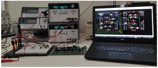 Indicatively, a screenshot of the analyzer, showing the gain frequency response during the measurement of the BP type of filter for orders , is demonstrated in Figure 6. From these plots, the versatile features of the implemented FPAA-based structure were verified, making the presented procedure attractive from the design flexibility point of view.