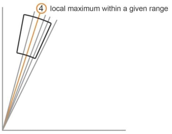 Centered Calculation of Local Maxima: Previous versions of the gradient analysis calculated local maxima in a top down fashion, starting with the 90 degree gradient and assigning all following gradients within a predefined tolerance to this gradient. The algorithm presented in this paper puts a calculation of local maxima first and assigns values within a given range to the values in a gradient list re-sorted accordingly (see Figure 4).
