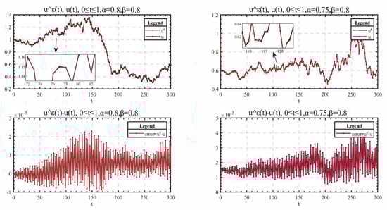 We give one example in this section to demonstrate our conclusion. Suppose is a one-dimensional Brownian motion. Take into account the following SDE with condition and :