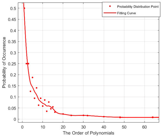 Proportion of primitive polynomials in all polynomials within the 64th degree, used a curve for fitting.