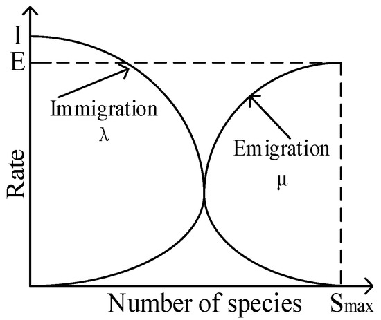 A multitude of optimization algorithms inspired by biological phenomena and laws have been established. Over the past decades, many algorithms have been widely used to solve problems concerning multi-objective programming engineering, and in other research fields [1,2] several other classical algorithms have been used, including differential evolution (DE), particle swarm optimization (PSO), the genetic algorithm (GA), and the sparrow search algorithm (SSA). However, recent theoretical developments have revealed that the BBO algorithm is more efficient in solving such problems. The BBO algorithm was first proposed by Simon in 2008 and is similar to most other optimization algorithms inspired by biogeography theory. The algorithm has a simple principle and few parameters; the well-known disadvantages of the BBO algorithm are that it easily falls into local optimization and slowly converges in a complex running environment. Therefore, research on the theory and application of the BBO algorithm is of high academic and engineering value [3,4,5].