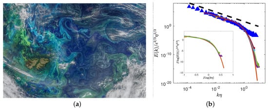 - Batchelor, G.K.; Townsend, A.A. The nature of turbulent motion at large wave-numbers. Proc. R. Soc. Lond. Ser. Math. Phys. Sci. 1949, 199, 238–255. [Google Scholar] [CrossRef]