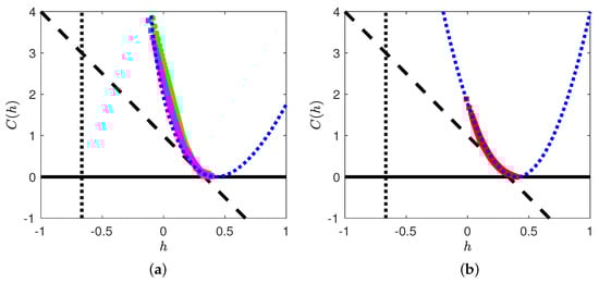 At this stage, the only constraints we have come from normalization of the probabilities resulting in , and Legendre transform property Equation (6), meaning that is a convex function of h. It is however possible to constrain further the shape of using either symmetry arguments, or directly Navier–Stokes equations.
