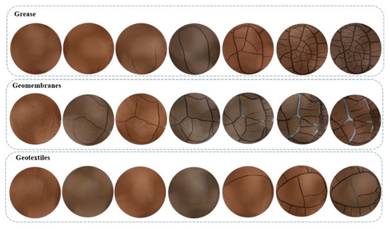 However, there are few reports on the relationship between soil drying shrinkage cracking, and the friction and permeability of the contact surface. Therefore, in order to fully understand the influence of interface friction and water permeability on soil drying cracking behavior, six samples were prepared in the laboratory. The basic conditions of the substrate were grease, geomembranes, and geotextiles. They were continuously dried at a constant ambient temperature. Using digital image processing technology, crack morphology under different spacing is described quantitatively. The effects of interface friction and permeability on soil cracking behavior are analyzed, and the evolution characteristics and formation mechanism of cracks in soil are revealed.
