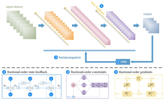 Fractional-order derivative can be introduced into the state feedback in the chain structure of the proposed FORNN, resulting in fractional-order state feedback, as shown in Figure 3b. Figure 3a is the integer-order state feedback, which can be presented as