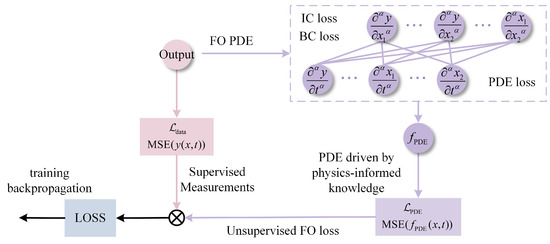 With Lemmas 5 and 6, the general form of a fractional-order PDE constraint is proposed to encode physics-informed knowledge into the loss function of FORNN. For a specific object, the physics-informed PDE in (20) should be extracted from certain equations by object modeling.