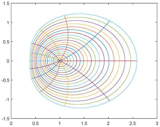 was first investigated by Cho et al. []. In virtue of , it is seen that the three function classes are associated with the exponential function. The exponential function has a positive real part in and an image domain (see Figure 1). Let . The function is called a modified sigmoid function. It maps onto a domain (see Figure 2). Moreover, is convex and hence starlike with respect to . For , the quantity lies in an eight-shaped region in the right-half plane.