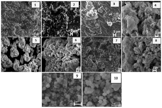 Variation of morphology for the isolated and frozen samples during the zeolitization process (samples 1–10 from Scheme 1), respectively, the formation of building units during induction, nucleation, and crystallization steps, was investigated by scanning electron microscopy (Figure 1).