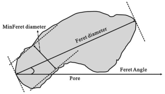 Illustration of the pore space parameters (Feret angle, Feret diameter, and MinFeret diameter) [48].