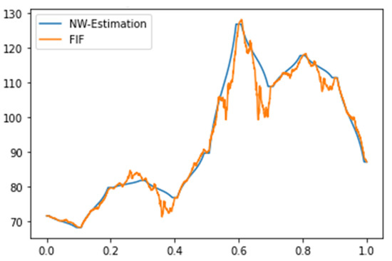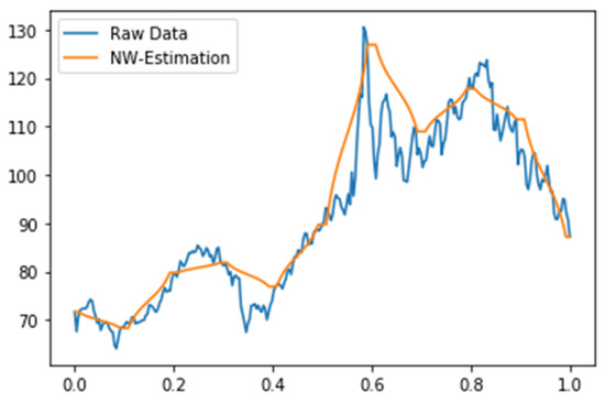 where is an unknown function, and each is an observation of . Here, all are independent stochastic disturbance terms with zero expectation, E, and finite variance, Var. In this section, we consider the Nadaraya–Watson estimator for and establish an estimation for the expectation of .