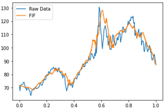 The graphs of raw data and are shown in Figure 2. The graphs of and are shown in Figure 3. The graphs of raw data and are shown in Figure 4.