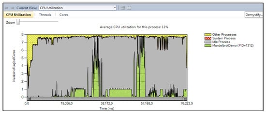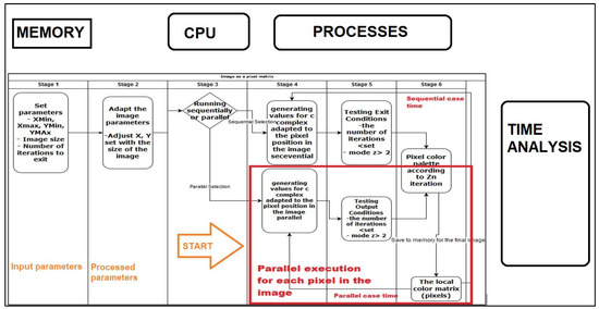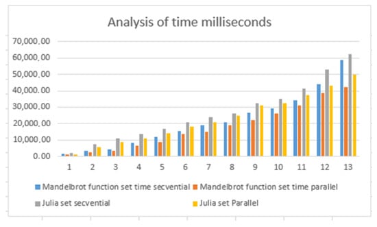 Research in the field of fractal generation and the use of algorithms and software systems is also used in image compression or decompression, as in [15], where a multithreading-based parallelism technique using multi-core processors which minimizes the compression duration was proposed. The need for the parallelization of compression techniques was highlighted in [16], where the emphasis was also on a parallel development model similar to the one proposed in the present article.