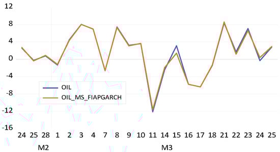 However, it should be noted that the models provide forecast improvement under such turbulent periods. The sample period is between 1 January 1990 and 25 March 2022 and the out–of–sample forecasting evaluation is conducted for the last 30 days covering the early days of March 2022 which provided an interesting experiment for our models. The Ukraine–Russia War started on 20 February 2022 and had important effects on the world economies, not to mention the energy crisis and fluctuations in oil prices. During the period, precious metals have also been subject strong fluctuations. As seen in Table 8, MSE and RMSE results provided significant improvement in forecast performances for out–of–sample forecasts that covers the Russia–Ukraine war. If models are compared in this respect, the MLP–type neural network–augmented MS–FIAPGARCH–MLP model showed significant gains in forecast performance over its non–MLP–augmented counterpart for all precious metals and oil series analyzed. The results show that MLP–based neural networks augmentations provide improvement in forecasting in such turbulent periods. The augmentation of the proposed models with deep neural networks would provide a new area of research for the future studies.