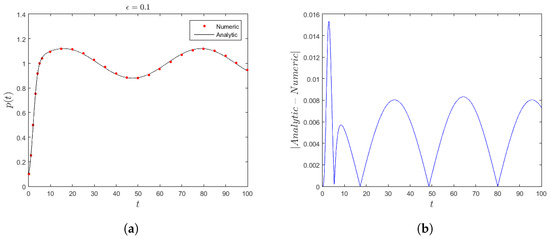 Since there is no exact solution for our assumption provided in the literature, we consider obtaining a numerical solution of our system, utilizing the fourth-order Runge–Kutta technique. Then, such a result is compared with the analytical approximation to validate the accuracy. To do that, we first consider that the carrying capacity,