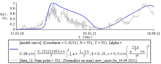 In the future, in order to compare the experimental data with the model data, in most cases we will need to normalize the array of experimental data to the maximum. Consider an example, let input_data_new_cases_1 be an array of data up to 16 September 2021, and input_data_new_cases_2 be an array of data up to 31 December 2021. input_data_new_cases_2 has a maximum element with a value greater than the maximum element from input_data_new_cases_1. Then you need to normalize both arrays to the maximum element with a large value.
