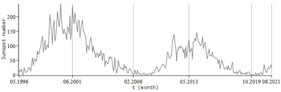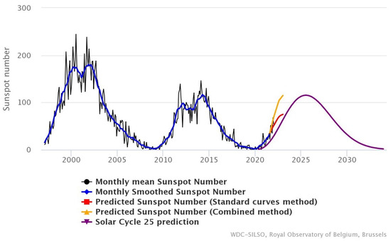 - Sunspot Index and Long-Term Solar Observations. Royal Observatory of Belgium (ROB) Av. Circulaire, 3–B-1180 Brussels. Available online: http://www.sidc.be/silso/home (accessed on 15 August 2021).