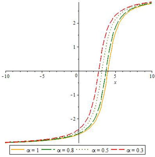 Take the following solution as an example to describe how the solution changes with different . Let , one can get . Figure 1, Figure 2, Figure 3 and Figure 4 depict the solution for different at .