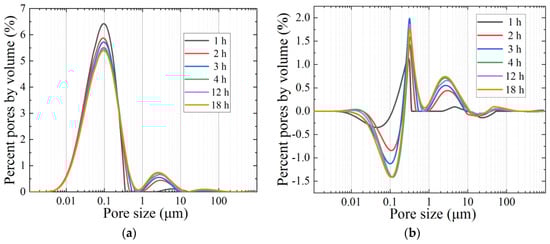 Effect of freezing duration: (a) pore size distribution; (b) differences in the pore size distribution.
