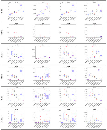 rPSP, rHV, IGDX, and IGDF indicator metrics comparison based on CEC2020 test suites.