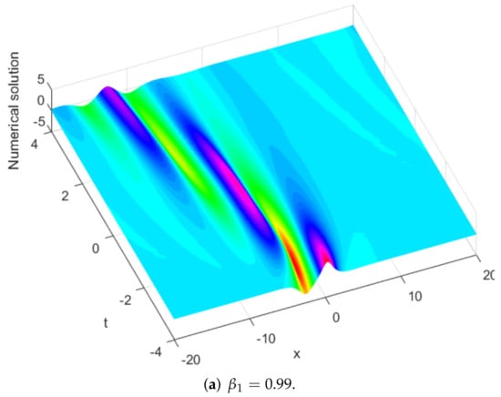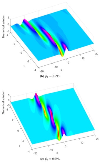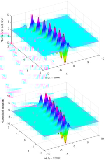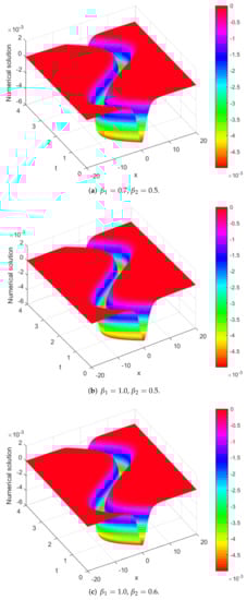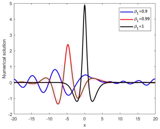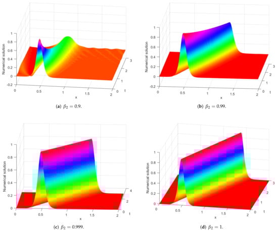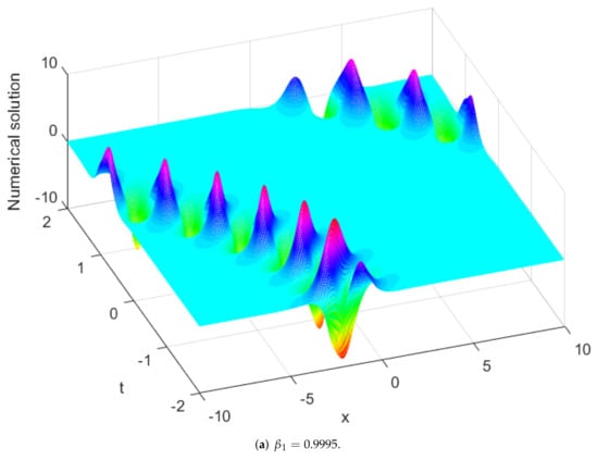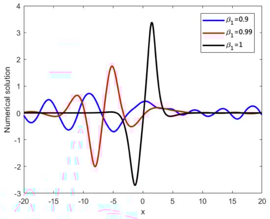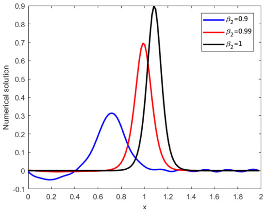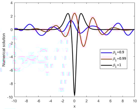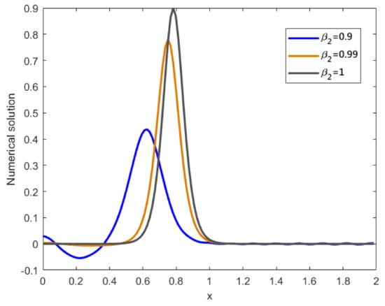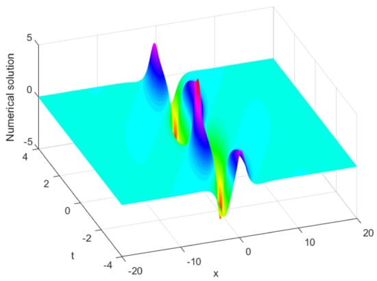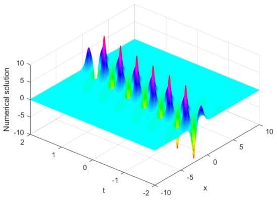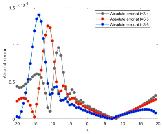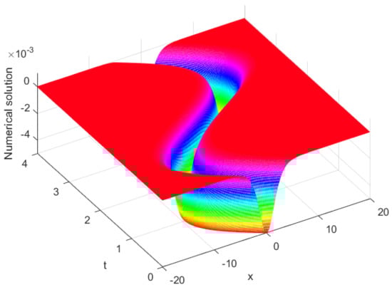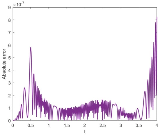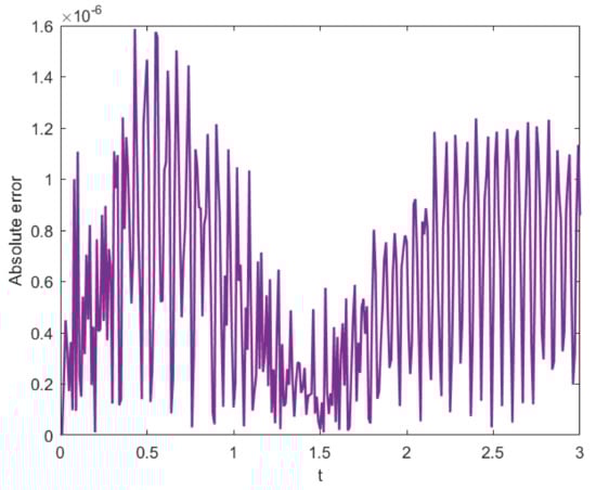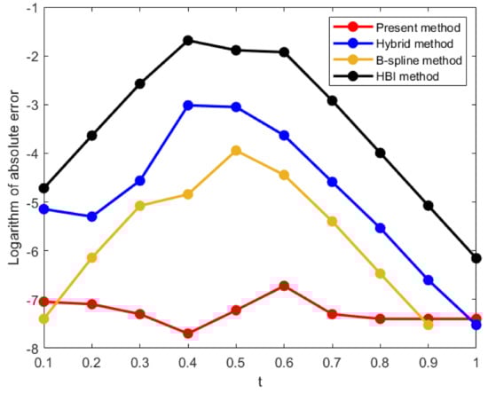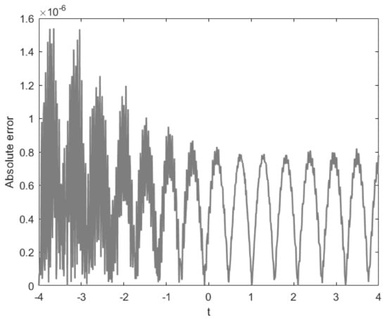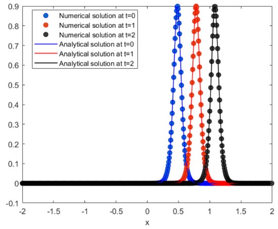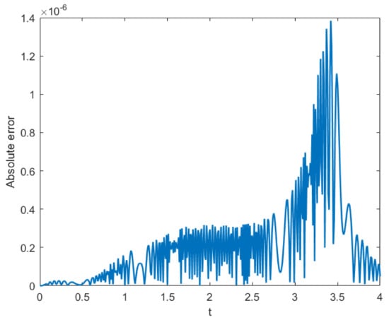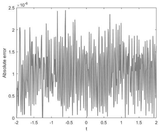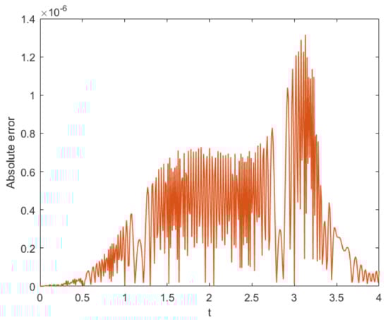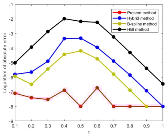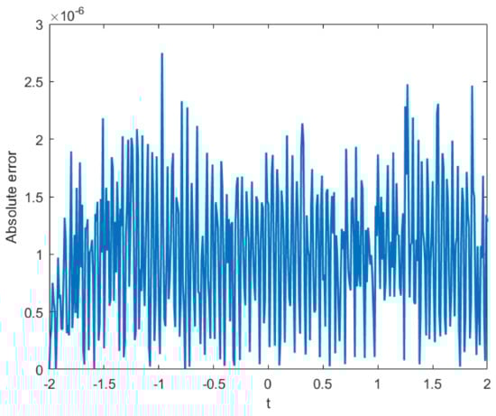 Numerical solutions of obtained by the present method and analytical solutions at for Example 1.