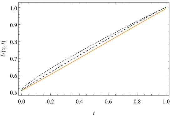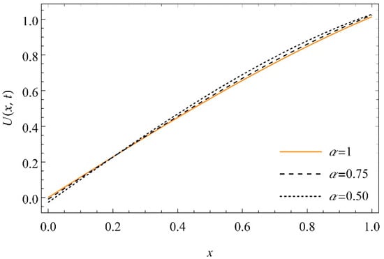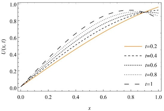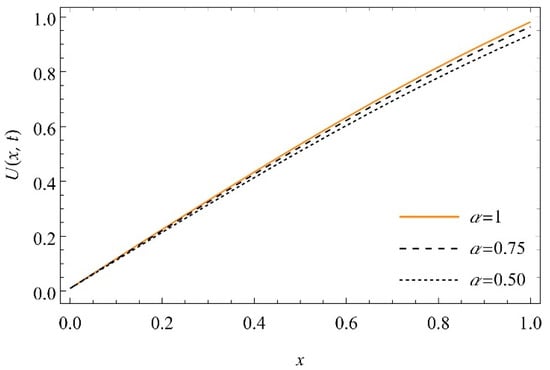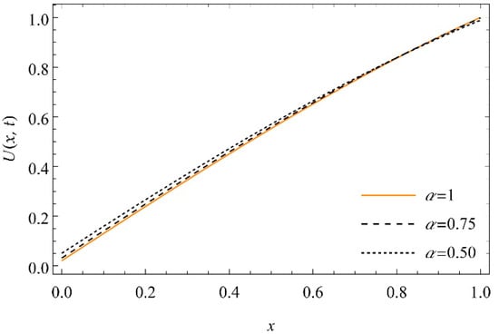 By implementing , , and , the attained solution will close up with the analytical result as .