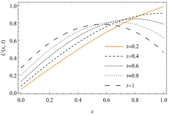 The term diffusivity is taken to be constant as and [], and using the dimensionless variables and , then Equation (8) reduces to the following governing equation:
