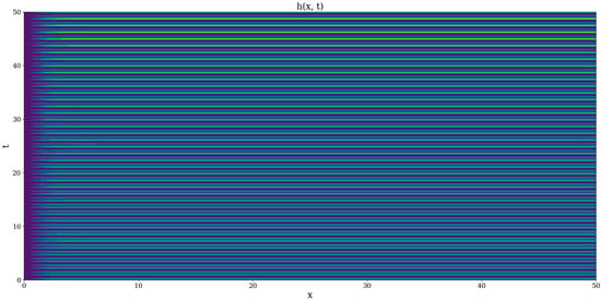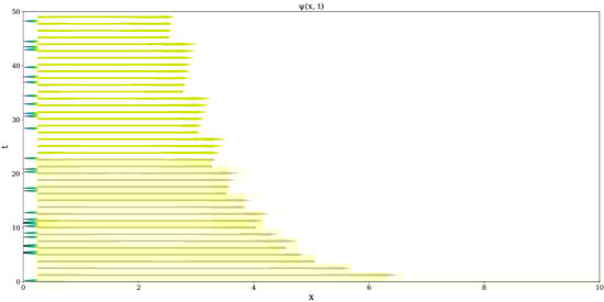 Because of its nonlinearity, Equations (1) and (2) admit analytical solutions only in special, particular cases. Such a case is dictated by the one-dimensional dynamics of the complex system entities through the following: