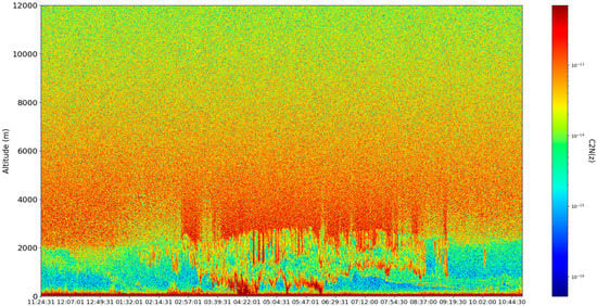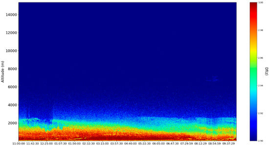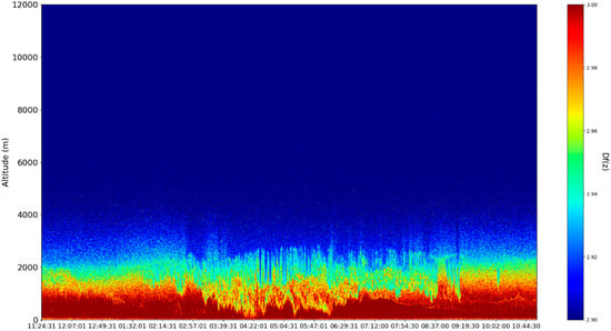 When introducing the ceilometer data plots, technical details must be presented; the platform used to produce this data is described in the following segment. The platform utilized in this study is a CHM15k ceilometer operating at a wavelength, positioned in Galați, Romania, at the UGAL–REXDAN facility found at the coordinates , , ASL, which is a part of the “Dunărea de Jos” University of Galați. The instrument itself has been chosen so as to conform to the standards imposed by the ACTRIS community. From a computational perspective, the necessary calculations are performed through code written and operated in Python 3.6.