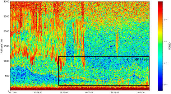 14]. The region of delineation between the SBL and the RL can also be seen, and while the RCS indicated a region of lower intensity and thus of a lower concentration of atmospheric components,