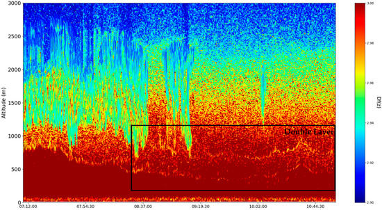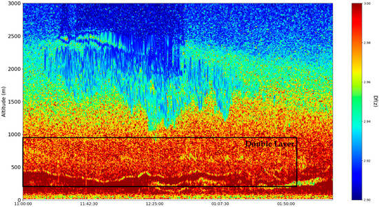 Figure 16). Despite the presence of many cloud-type structures, the lower part of the time series is generally unaffected and can be analyzed. The start of the time series shows a convective mixed layer typical of noon conditions, and in the latter stages of the time series, the stratified structure of the stable boundary layer (SBL) and the residual layer (RL)—the gap between them, which we shall name “the double layer”—is delineated by the region of low