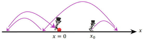 For the random search processes based on the Lévy flight model, the distribution of displacement lengths has the asymptotic power-law form with for which the second moment of the jump lengths diverges, i.e., [15]. The resulting motion is spatially scale-free, and fractional, qth-order moments with exist. Lévy flights have found various applications, ranging from the famous flight of the albatross [13], spreading of spider-monkeys [16], grazing patterns of bacteria [17], over economical data [18,19] to molecular collisions [20], plasmas [21,22,23] and lattice gas automata [24,25]. In recent years, the search processes that optimise random blind searches for sparse targets in different settings have been discussed [9,26,27]. In particular, combinations of Brownian search and Lévy flights were studied [28].