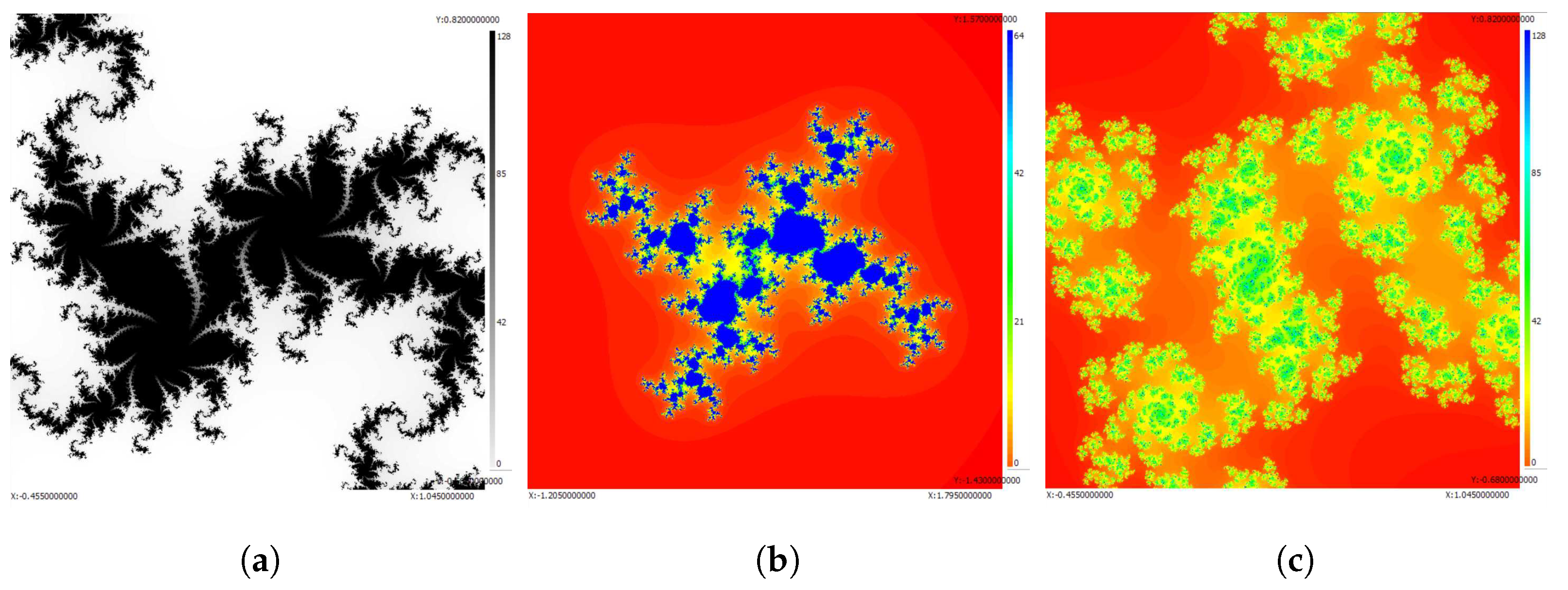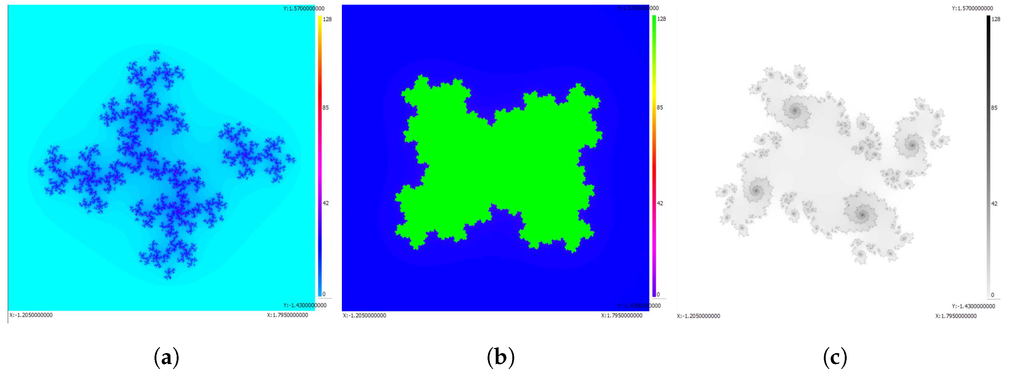 Figure 7 show the visualization of the Julia set’s various shapes for