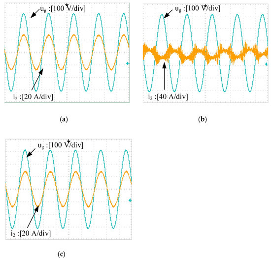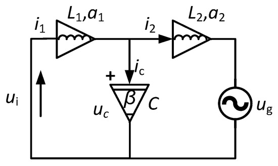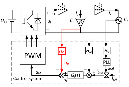 Distributed power generation systems (DPGSs) based on renewable energy such as wind and solar energy are an effective way to alleviate the problems of energy shortage and environmental pollution. As the power conversion interface between DPGSs and utility grids, grid-connected inverters play an important role in injecting high-quality current into the grid [1,2]. The use of high-frequency switches in voltage-source inverters (VSIs) produces serious high-frequency harmonics in grid current that directly affect the grid power quality and the system stability. To meet the relevant power quality standards [3,4], a low-pass filter must be used to interface the VSI and the grid. L-type grid-connected inverters are usually used to limit the current harmonics. However, because of the excessive switching frequency, a single-inductor L-type GCI can worsen the system dynamics and operating range of the system [5,6]. For the GCI, LCL filters are usually adopted, since they have smaller size, lower cost, and better harmonic attenuation capability than L filters [7,8,9]. However, LCL filters produce a resonant peak and a −180° phase jump, which causes a current oscillation, resulting in serious system instability [10,11,12].