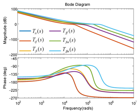 The bode plots of the loop gains in (26)–(31) are shown in Figure 10.