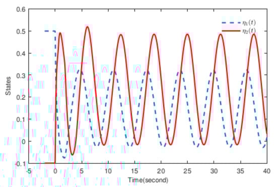 where is the state variable of the NNs, is the output, and is the external input of System (33). The parameter matrices are , , , and . Define the uncertainties as follows: , , , , , and .