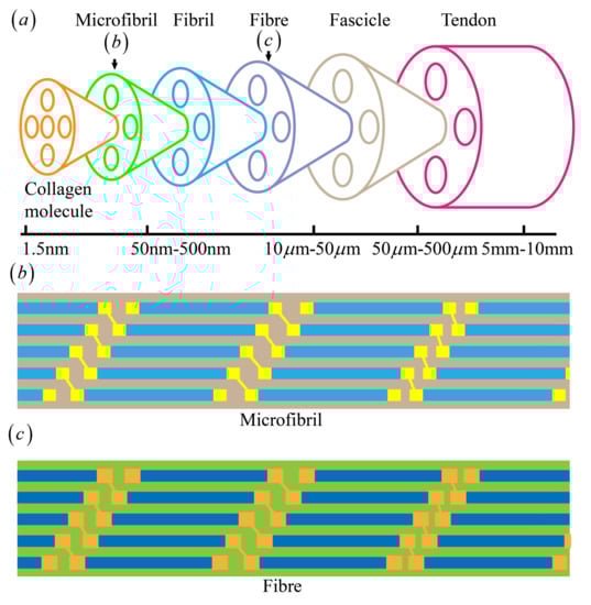- Kasteltic, J.; Galeski, A.; Baer, E. Multicomposite structure of tendon. Connect. Tissue Res. 1978, 6, 11–23. [Google Scholar] [CrossRef]