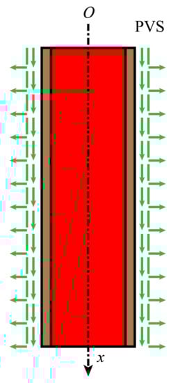 Maiken et al. [,] demonstrated that pulsation of the cerebral artery provides the driving force for the ISF flow within the perivascular space (PVS). The pulse-driven ISF flow can be attributed to ratchet wheel movements [,,,]: periodic diastole and contraction of the arterial wall may cause periodic changes in the width of the PVS, which in turn drives two flows of ISF, a unidirectional flow in the axial direction and a diffuse flow in the radial direction into the brain parenchyma (Figure 6).