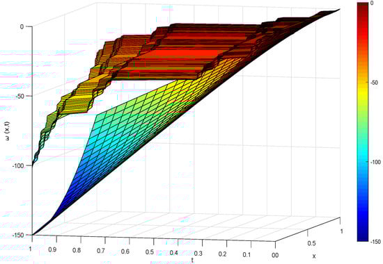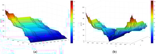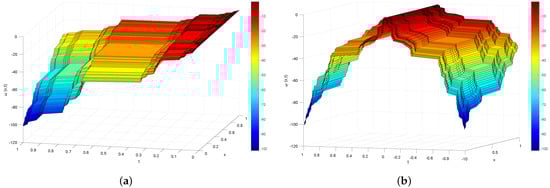 When the fractal dimension is , the corresponding diagrams of and are as shown in Figure 1 and Figure 2.