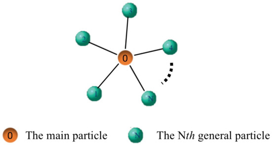 Here, is the position of the ith particle at time t. Particularly, and represent the main particle and the general particles of the star-coupled oscillator, respectively (see Figure 1). The oscillators interact with each other through a linear coupling term or , and is called the coupled coefficient. Moreover, the whole system is driven by the external periodic force , with representing the amplitude and frequency, respectively.