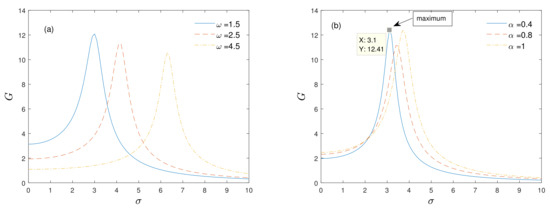 The output gain G as function of under different values of and . The common parameters are set as and , and the other parameters are (a) and (b) .
