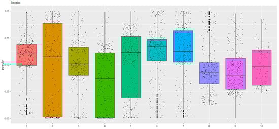 After that, we collected the p-values and created a box plot with jitter for each subset in order to determine the outlier values for p (cf. Figure 12).