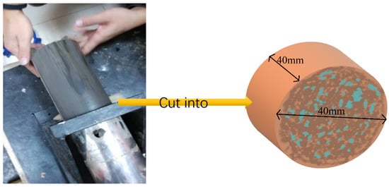 The original soft soil samples were taken from the tunnel section of Zhejiang University’s Zijingang Station and Sanba Station, which belongs to Hangzhou Metro Line 2. The maximum burial depth of the soil layer in this interval is 11.8 m, and the groundwater level is 1–2 m. The soil sample used in this test was about 5–5.5 m depth, which belongs to soft soil (based on USCS classification). The soil specimen was 40 mm in diameter and 40 mm in thickness (showed as Figure 1). The soil extraction processes were carried out in strict accordance with the relevant requirements, so the quality of soil samples could be effectively guaranteed.