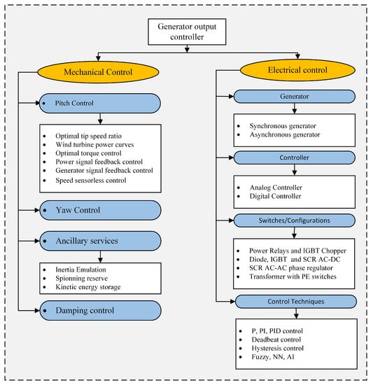 Electrical and mechanical control schemes used in WECS.