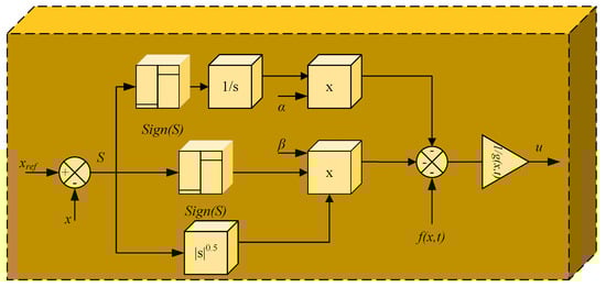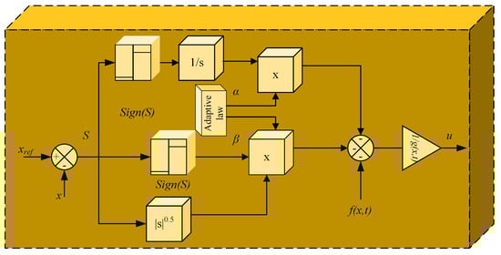 The stability proof for the adaptive STSMC can be found in [] with the Lyapunov function given by [], and the operational diagram is shown in Figure 7.